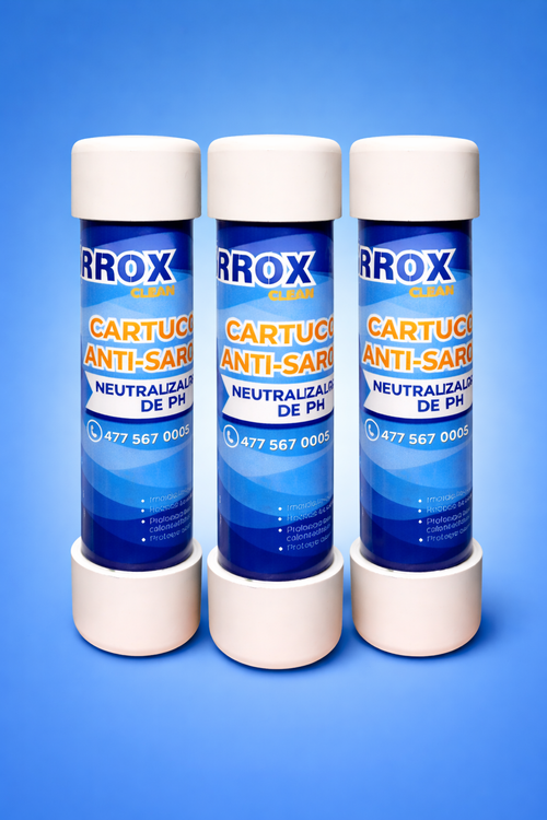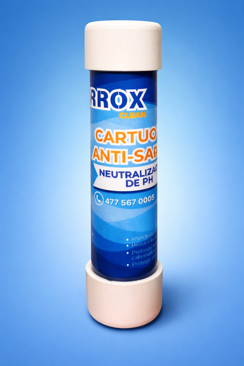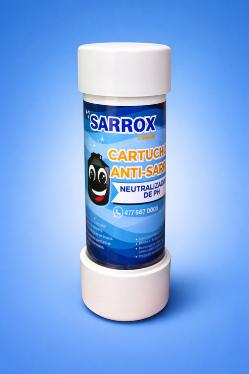 SARROX CLEAN es un cartucho anti-sarro diseñado para proteger tus equipos y mejorar la calidad del agua desde el primer uso. Su tecnología ayuda a neutralizar el pH y previene la formación de sarro, evitando incrustaciones que dañan tuberías, calentadores, boilers y electrodomésticos. Al utilizar SARROX prolongas la vida útil de tus equipos, reduces costos de mantenimiento y aseguras un funcionamiento más eficiente, todo con un producto seguro, no tóxico y sin alterar el sabor ni el olor del agua.